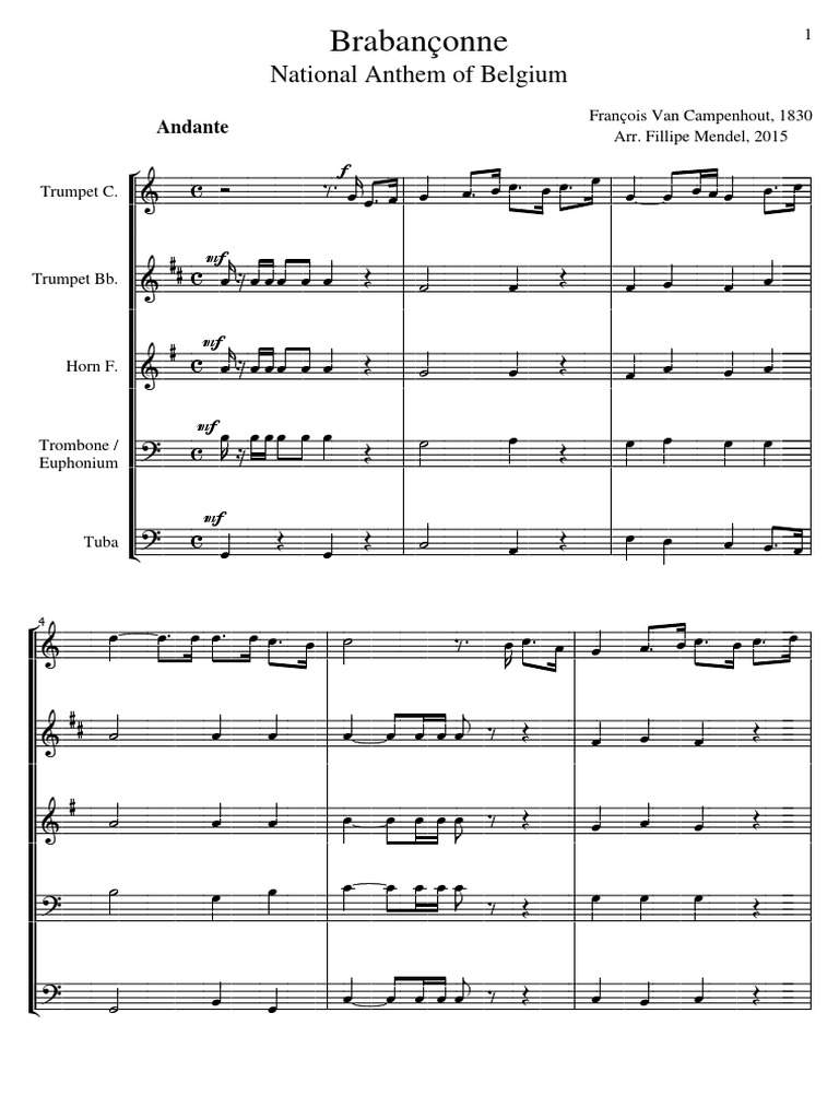Brabanconne - Francois Van Campenhout La Brabanconne National Air Of Belgium Sheet Music In Bb Major Download Print Sku Mn0121546 : La brabançonne / de brabançonne is the national anthem of the kingdom of belgium.